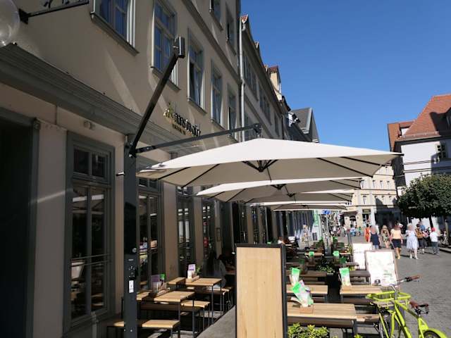 Es ist ein typisches Lokal mit einer großen Auswahl von Burgern, Salate und Bowls. Selbst Veganer und Vegetarier kommen auf ihre Kosten. Eine lange Reihe von Tischen befinden sich im Außenbereich. Bei der Namensvergabe auf der Speisekarte waren die Betreiber besonders kreativ. Das Angebot der Speisen reicht von „Weltenbummler“ und „Seeleheil“ bis hin zu „Omas Geheimnis“ im Nachspeisenbereich. Der Preis von 7,50 € für einen Aperol Spritz erscheint mir allerdings etwas zu hoch. Fischmarkt 18 – 20 99084 Erfurt