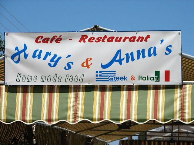 Das Essen bei Hary's & Anna's ist etwas Besonderes; alles ist ganz frisch zubereitet, das Brot wird täglich von Anna selbst gebacken. Anna ist Italienerin und kocht griechische und italienische Gerichte. Ich durfte die Küche besichtigen - blitzblank obwohl schon 20 Jahre alt. Anna und Hary bemühen sich sehr um ihre Gäste, man spürt, dass sie Freude an ihrer Arbeit haben. Der Ausblick von diesem Lokal ist auch wunderschön.