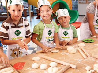 Das Haubis ist ein Backunternehmen, das im "Haubiversum" Führungen durch die Fabrik, aber auch ein Restaurant und ein Cafe anbietet. Das „Reich der Genüsse“ liegt in Petzenkirchen, nur etwa 5 Minuten von der A1-Abfahrt Ybbs an der Donau entfernt. Von hier geht es weiter Richtung „Wieselburg/Scheibbs“. In Wieselburg links abbiegen und Richtung Petzenkirchen fahren. Im Ort direkt könnt ihr einfach den Hinweisschildern folgen - oder ihr haltet nach dem lustigen Getreideturm Ausschau, dann klappt es auch. Parkplätze sind genügend vorhanden. Fünf Minuten vor Führungsbeginn schlenderten wir also zum vereinbarten Treffpunkt - leicht zu finden, denn die Toiletten sind ganz in der Nähe und meist war man vor der Führung dort schon einmal. Wenn nicht, dann ist der Treffpunkt auch groß beschrieben. Dann heißt es mal für Groß und Klein, eine Schürze anzuziehen, schließlich soll man ja nicht schmutzig werden. Ausgestattet wie ein fleißig arbeitender Bäcker geht es dann in ein Kino, kurz und informativ wird hier die Erfolgsgeschichte der Haubenbergers seit dem Jahr 1902 erzählt - und dass jeder erste männliche Nachfolger den Namen „Anton“ trägt. Danach wird die Leinwand hochgeschoben und ganz mystisch kommt Nebel aus dem dahinter liegenden Raum. Dieser entpuppt sich als kleine Backstube und gleich zu Beginn heißt es, sein eigenes „Mohnflosserl“ zu gestalten. Wir hatten zwei Führerinnen, die vorzeigten und mithalfen, damit das ganze auch wirklich annähernd wie ein Flosserl aussieht. Ich fand es recht einfach, aber mein Mann hatte ganz schon zu kämpfen mit seinem Teigling. Den Kindern war es ohnehin egal, welche Figur sie formten, Hauptsache es gab danach etwas zu essen. Wir durften dann das Flosserl - oder was auch immer aus dem Teig geworden ist - mit unterschiedlichen Zutaten bestreuen, Mohn war nur eine Möglichkeit, es gab auch Sesam, Salz, Kürbiskerne und noch mehr. Damit jeder auch noch sein Werk erkennt und sich nicht einfach eines nimmt, das wesentlich schöner aussieht, bekommt man auch noch ein Fähnchen, das eine Nummer in zweifacher Ausfertigung enthält. Eine Nummer abreißen und gut aufheben, die andere in sein Kunstwerk stecken und dann geht das ganze ab in den Ofen und wird gebacken, damit man es am Ende der Führung dann auch mitnehmen kann. An dem Tag, an dem wir dort waren, gab es über 70 Leute, die gerne die Führung mitmachen wollten, daher wurden wir in zwei Gruppen geteilt. Weil wir so schnell mit Backen fertig waren, schafften wir es gleich in die erste Gruppe. Nun hieß es zuhören und beobachten - letzteres allerdings wäre wesentliche einfacher, wenn der Betrieb auch wirklich in Betrieb wäre. Leider wird nur von Montag bis Freitag gebackten - gut für die Mitarbeiter aber schlecht für die Besucher, denn so sahen wir leider nur Maschinen, die nicht in Betrieb waren und die Putzkolonne. Daher kann ich euch nur wirklich ans Herz legen, wenn ihr die Möglichkeit habt, unter der Woche zu kommen, dann tut das, denn dann habt ihr die Gelegenheit, deutlich mehr zu sehen. Wir mussten uns auf Bilder und Erzählungen verlassen. Was ich mir gemerkt habe, ist unter anderem, dass es sich hier um einen Familienbetrieb in der mittlerweile 5. Bäckergeneration handelt. Pro Tag werden 80 Tonnen Mehl pro Tag, das zur Gänze aus Österreich kommt, verarbeitet und rund ein Viertel ist der biologische Anteil. Pro Tag werden 1,2 Millionen Teiglinge verarbeitet und mit etwa 100 LKWs an die Kunden geliefert, zu denen vor allem Großkunden wie Billa, Spar, Merkur oder Metro zählen. Der Familienbetrieb hat etwa 650 Mitarbeiter. Gut finde ich auch, dass Haubis am Abend das nicht verkaufte Gebäck an Sozialbetriebe, wie etwa den Sozialmarkt, liefert. Da ich ja in einem Jugendheim wohne, können wir selbst von dieser Großzügigkeit über Merkur profitieren und dieser Idee sollten alle Backbetriebe folgen. Wir spazieren also durch die Produktionsräume, kosten uns durch Gebäck und Süßes und kommen immer beim „Schlankmachspiegel“ vorbei, d.h. hier wird auch auf Show wert gelegt, so verfolgen wir zwei Hefebakterien durch Sonne, Kälte und Hitze und hören uns eine kleine Geschichte dazu an. Nach etwa 80 Minuten waren wir durch und wieder ein kleines Stück weiser. Nachdem wir erfolgreich unser Mohnflosserl gefunden hatten, ging es in den Außenbereich, der wunderschön angelegt war. Hier kann man sich entspannen, im Teich die vielen Fische beobachten oder den Kindern beim Spielen zuschauen. Viele unterschiedliche Kleinfahrzeuge laden die Kinder ein, diese auch zu benützen und wie Rennmeister durch die Gegend zu zischen. Es gibt außerdem einen Brunnen, der in Richtung Gebäude fließt, angeblich als Symbol dafür, dass immer Geld fließen soll. Zum Abschluss sahen wir uns das Knusperhäuschen noch einmal genau an, doch alle Tische waren besetzt und daher wollten wir nicht zu sehr stören. Es war auf alle Fälle sehr gemütlich und hier kann man auch Menüs bestellen. Abgesehen zum Knusperhäuschen gibt es auch noch ein Café. Geöffnet ist beides von 7.00 bis 18.30 Uhr und zwar täglich. Haubis hat sich auf zwei große Punkte konzentriert, zum einen auf ein vielfältiges Frühstück und zum anderen auf Gourmet-Brote, die sich wirklich lecker anhörten und zwischen EUR 6,90 und EUR 9,90 zu Buche schlagen. Die Brote werden zwischen 11.00 Uhr und 15.00 Uhr serviert. Für Gruppen werden auch eigene Menüs angeboten, so etwa das „Hänsel Menü“, wohinter sich ein Grill-Mix versteckt, oder das „Gretel-Menü“ mit Selchroller, Kraut und Kartoffeln. Bei Haubi’s gibt es rund 550 Produkte, wobei sie wohl mit der Kaisersemmel ein großes Schnippchen geschlagen haben. Wenn ich Weißgebäck kaufe, dann eigentlich nur Kaisersemmeln, weil sie einfach die besten sind. Derzeit aktuell ist das ORF Frühlingszeitweckerl, das auch bei der Verkostung vorhanden war. Zutaten sind hier etwa Birkenblätter (zum Glück schmeckt man die Bitterheit hier nicht raus), Buchweiz