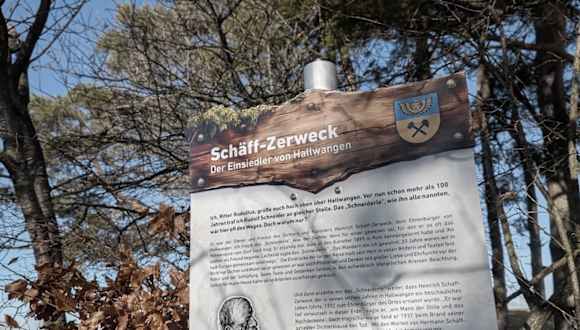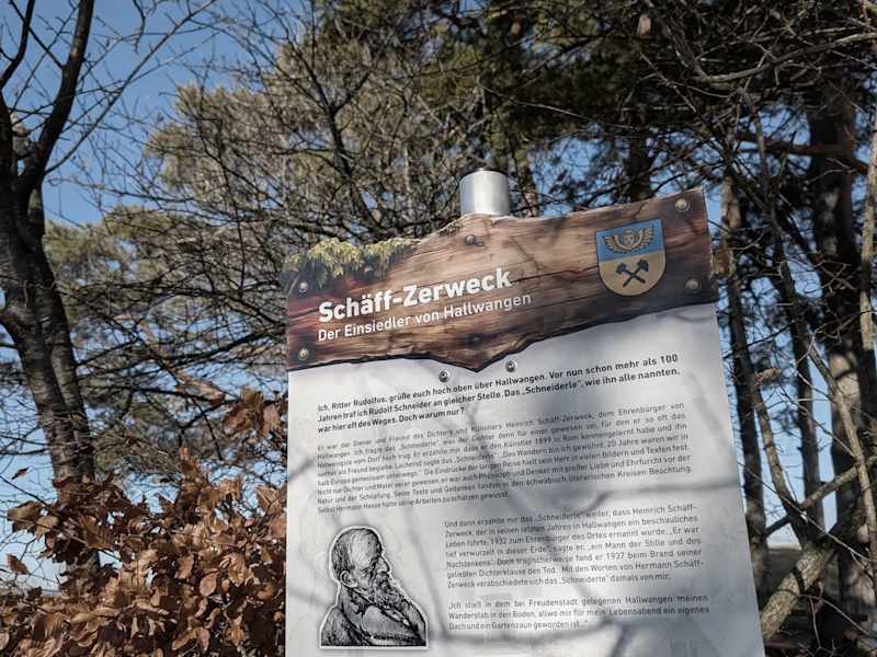 Etwas außerhalb von Hallwangen ist der Gedenkplatz für Heinrich Schäff-Zerweck. Dem Ehrenbürger der Ortschaft Hallwangen wurde hier ein Gedenkstein aufgestellt. Es ist ein beliebtes Wanderziel, führen doch hier verschiedene Wanderwege vorbei. Der Platz ist in einem Viereck mit großen Granitsteine ausgelegt. An der hinteren Seite steht der Gedenkstein. Adresse: Köpfle, 72280 Dornstetten Geodaten: FGJ4+V3, 72280 Dornstetten