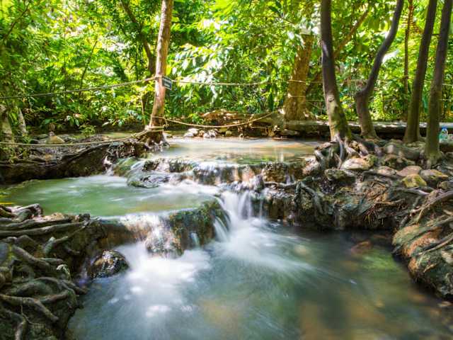 Baden Sie in den herrlichen heißen Quellen von Khlong Thom. Beginnend an dem Ursprung der Quelle haben Sie die Möglichkeit, auf ungefähr 50 Metern in den natürlichen, mitten im Regenwald gelegenen Whirlpools, bei einer Temperatur von 35 – 42 Grad zu baden. Die von den Thermalquellen aus unterirdischen, vulkanischen Kammern mit frischem Quellwasser gespeisten Pools sollen aufgrund ihres Mineralgehaltes gegen Rheuma, Rückenschmerzen und Hautprobleme helfen. Verfasst von HolidayCheck