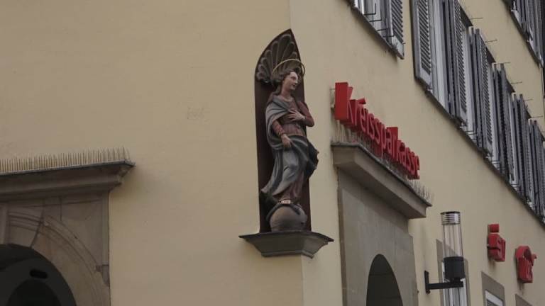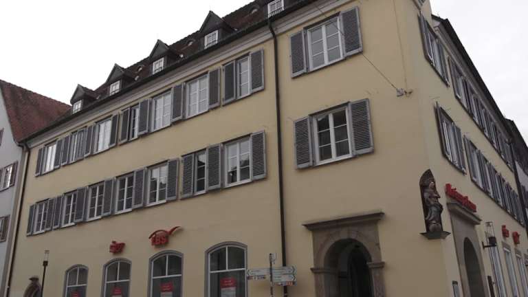 Anstelle der Kreissparkasse stand am Rottenburger Marktplatz einst die vornehme Herrenstube des Adels und der städtischen Oberschicht. „Die Edelleut, wie auch die Herren und gemeine Burger haben ihre besondere Stube, die Herrenstube genannt, wo sie im Sommer und Winter ihre Zeche zu halten pflegen. Darin wird mit guter Ordnung eine ehrliche (ehrbare) Gesellschaft gehalten. Sie sind auch besonders etlicher Artikel (der Herrenstuben-Satzung) halber privilegiert und gefreit“. So beschrieb Rottenburgs Chronist Christoph Lutz von Lutz dieses historische Gebäude. Die Rottenburger Herrenstube war eine Besonderheit, da solche Stuben ansonsten eher Freien Reichsstädten vorbehalten waren.