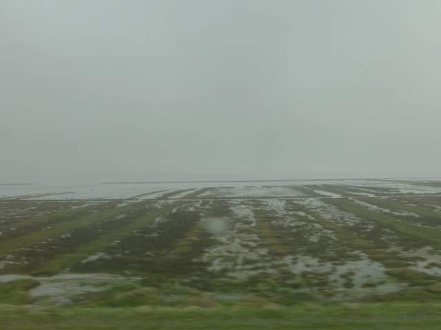 Der Hindenburgdamm ist DIE Verbindung vom Festland nach Sylt – und nur mit dem Zug befahrbar. Selbst das Auto muss, wenn der/die Fahrer_in das Lieblingsgefährt mit nach Sylt nehmen will, auf den Zug verfrachtet werden. Der ca. 12 km lange Hindenburgdamm wurde vor ca. 90 Jahren eröffnet (genauer gesagt im Jahr 1927), erst eingleisig, seit den 1970-er Jahren zweigleisig. Da durch Eindeichungen Land dazugewonnen wurde, geht der Damm heute „nur“ noch ca. 8 km über das Wattenmeer. Man sitzt im Zug und fährt bei Flut mehr oder weniger „durch das Meer“.