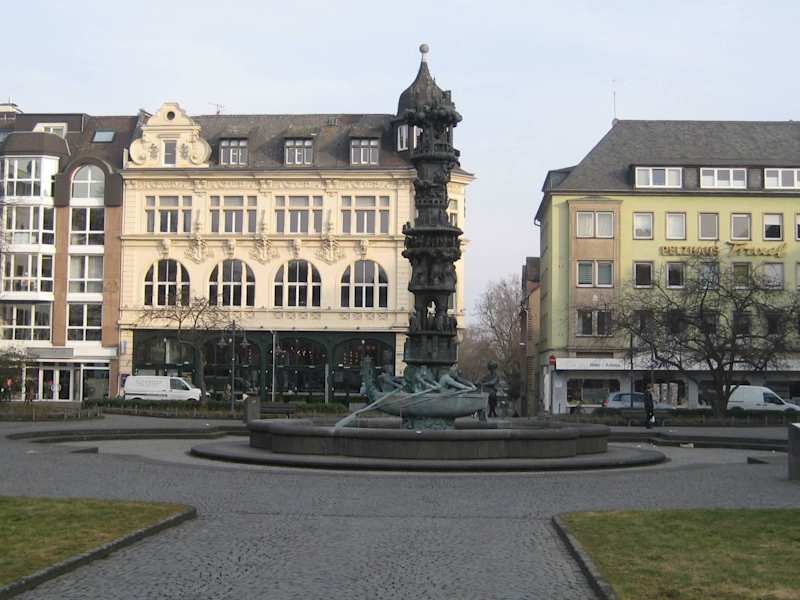 Der Brunnen auf dem Josef-Görres-Platz ist die Historiensäule. Er war ein Geschenk des Landes zur 2000 Jahr Feier. Der Bildhauer Jürgen Weber hat den Brunnen geschaffen. Die 10 Meter hohe Säule zeigt die Geschichte der Stadt Koblenz.