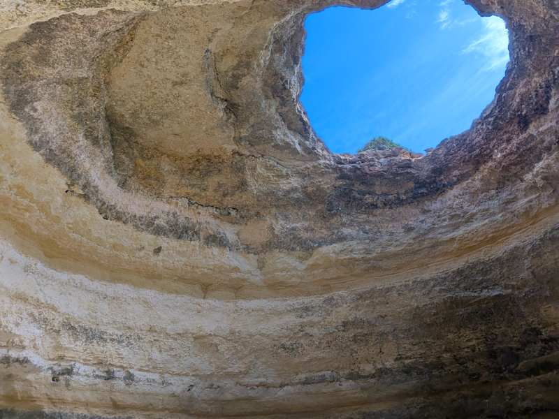 Blick vom „Dach“ in die Höhle von Benagil