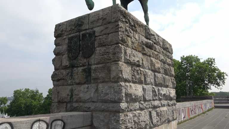 Das von 1907 bis 1911 errichtete ursprüngliche Bauwerk bestand aus zwei Eisenbahnbrückenzügen und einem Straßenbrückenzug. Im Krieg wurde sie zerstört. An der Brücke sind noch alte Teile als Denkmal zu sehen. Vier Reiterstandbilder preußischer Könige und deutscher Kaiser der Hohenzollern-Familie sind jeweils an den Rampen. Die Brücke ist eine wichtige Verbindung über den Rhein. Adresse: Hohe Str. 77-79, 50667 Köln Geodaten: WXP4+XC Köln