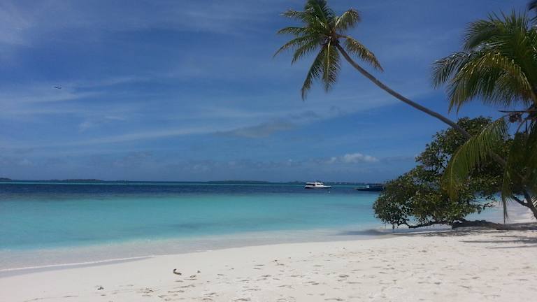 Wer sich im nord male atoll aufhält, und eine grosse insel mit vielen gästen hat, der sollte auf jeden fall einen ausflug nach kuda bandos machen wir waren auf bandos island, fahrtweg 5 minuten mit dem dhoni, fahrpreis 5. 50 usd pro person die insel ist klein, rund, nicht sehr viele touristen drauf, man hat für die zeit, in dem fall 3 stunden, in denen man da ist, einen privaten strandabschnitt, mit sehr breitem, weissen traumsand, kristallklare lagune, kleinem hausriff zum schnorcheln einfach wunderbare postkartenmotive, weil kaum menschen auf der insel sind und somit hat man viel platz