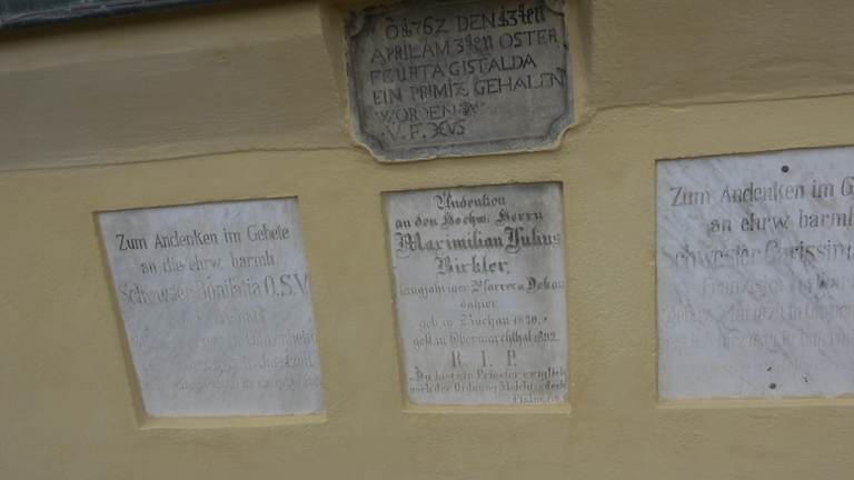 An der Kirchenmauer ist eine kleine Grotte integriert. Es ist eine Gedenkstätte zum Tode Jesus. Vor der Grotte sind Gitterstäbe. Jesus liegt am Kalvarienberg, ein paar seiner Jünger um ihn gruppiert. Sie ist an besonderen Anlässen eine Prozessionsstätte. Adresse: Friedhofstraße, 73450 Neresheim Geodaten: Q8GX+CX Neresheim