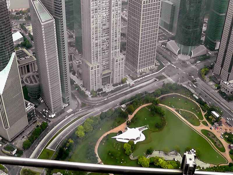Ein Wolkenkratzer was seines gleichen sucht.Das Gebäude hat 88 Etagen und eine Höhe von von 421 Meter.Im inneren ist das Hayatt Hotel was in der 56 Etage beginnt und bis zur 88 Etage geht.Ein weiteres Higlight ist das zum Hotel gehörende Atrium was von der 56-88 Etage sich erstreckt.Wer die Aussichtsplatform in der 88 Etage besuchen möchte muß dafür 70 Yuan bezahlen.Desweiteren befindet sich die Bar Cloud 9 im 87 Stock von wo man einen herlichen blick auf die Stadt hat. Das Gebäude liegt im Stadtteil Pudong in der Century Avenue 88 zu erreichen mit der Metro Linie 2 Station Lujiazui.
