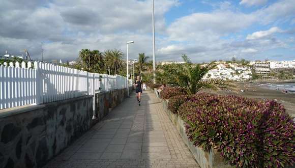 Start vom CC Tropical - dann runter zum Strand von Playa del Inglés - rechts ab Richtung Maspalomas (Dünenstrand) entlang des Meeres. Nach dem Leuchtturm geht es auf der Strandpromenade weiter Richtung Meloneras (Restaurants/Einkaufspassage). Wenn man bis ans Ende der Promenade läuft kann man noch entlang dem Golfplatz Richtung Krankenhaus bzw. eine Schleife zurück Richtung Einkaufspromenade laufen (RIU Palace, ...).