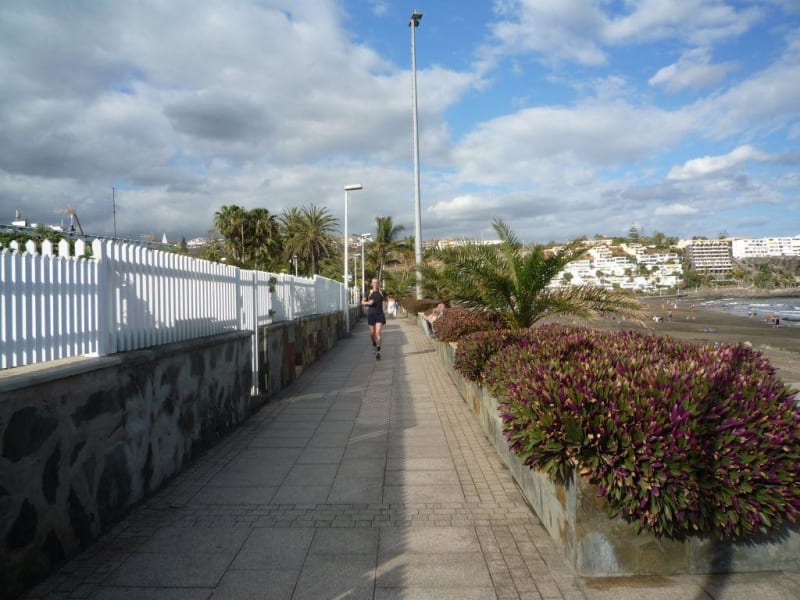 Eine besonders schöne Laufstrecke (die auch gut genutzt wurde) bietet die steinerne Strandpromenade von San Agustin bis Mapalomas. Vom CC Tropical bis zum letzten Hotel in San Agustin und zurück braucht man etwa 1/2 Stunde. Am parallel verlaufenden Strand selbst ist das Laufen ungeeignet, da oftmals der Sand zu weich ist oder Felsen den Weg versperren. Geeignet zum Joggen ist auch der große Sandstrand von Maspalomas (eine Strecke ca 6km?), allerdings sind dort viele Fußgänger unterwegs und es dürfte anstrengend werden (sehr heiß!!). Flüssigkeit und ordentlich Sonnencreme sind ein Muss! Im Ortsinneren ist Joggen eher unmöglich, da es viele Kreuzungen gibt und man zu sehr auf den Straßenverkehr achten muss. Die Fußwege sind zu schmal und es sind wirklich viele Fußgänger unterwegs. Dafür eignen sich nur die Fußwege neben den Flußbetten (Barranco de Maspalomas Canalizado, Avda. Lineas Aereas Lufthansa) ca 4 km eine Strecke. Durch die Brücken kann man sich die Laufstrecke gut einteilen, vor allem kann man auch im Schatten laufen. Außerhalb der Ortschaft würde ich nicht laufen, da es sehr heiß wird, staubig ist und überall spitze Felsen lauern.