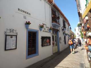 Wir wurden nach der Besichtigung der Mezquita-Catedral durch das ehemalige Judenviertel geführt. Aber von einem alten historischen Viertel ist nur noch ein aufgehübschtes Viertel mit Andenkenlädchen und Restaurants übrig geblieben, die alle nur eines im Sinn haben, Umsatz. Sicher, wer es mag, kann hier schlendern und das anschauen, was es immer in solchen Bezirken gibt und es für Touristen so interessant macht. Dabei sieht man auch schöne Patios, nett ist auch Calleja de las Flores, dort sollte man mal durchgehen.
