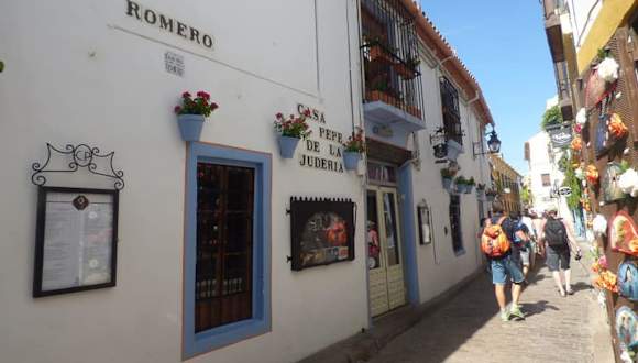 Unmittelbar an der Mezquita bis zum Almodovar Tor erstreckt sich das Gassengewirr des ehemaligen Jüdischen Viertels. Die labyrinthartigen Gassen und die kleinen Plätze laden zum Bummeln ein. Touristisch zwar völlig überladen, trotzdem stimmungsvoll. In den Gassen der weniger überlaufenen Touristenströme konnte das Viertel sich einiges an Charme bewahren.