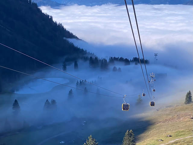 In ruhiger Fahrt geht es von Riezlern von der Talstation mit der Kanzelwandbahn von 1087 hoch zur Bergstation auf 1957 Metern Höhe. Bei der Fahrt mit den 6-er Gondeln hat man (abhängig vom Wetter) hübsche Aussichtsmöglichkeiten. Ab der Bergstation gibt es viele Wandermöglichkeiten mit unterschiedlichen Schwierigkeitsgraden und unterschiedlichen Längen. Direkt an der Bergstation der Kanzelwandbahn befindet sich das „Panoramarestaurant Kanzelwand" mit Innen- und Außenbewirtschaftung, Von hier hat man einen tolle Ausblick.