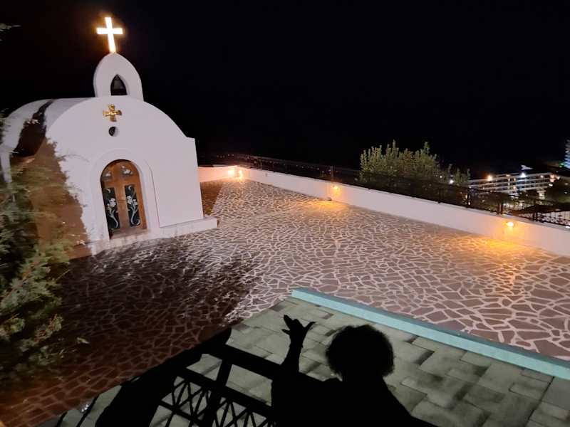 Oberhalb der Hotelanlage liegt auf einem kleinen Berg eine sehr schöne kleine Kapelle, die sehr beliebt für Hochzeiten und Fotomotive ist. Die Rundumsicht auf den Ort Faliraki sowie das Meer ist traumhaft und den kurzen Spaziergang allemal wert. Ob Sonnenauf- oder Untergang der Besuch der griechisch-orthodoxen Kapelle wird Sie garantiert bezaubern. Tagsüber ist das Gotteshaus geöffnet, wunderschöne Wandmalereien zieren den Innenraum. Verfasst von HolidayCheck