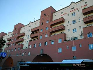 Das Wiener Wohnungselend um 1900 war katastrophal, die Stadt platzte aus allen Nähten. Es war für die vielen Landflüchter kaum Wohnraum vorhanden. In der Kriegszeit war es etwas besser, junge Männer mußten zum Militär. Nach dem Krieg wurden rund 60 000 Wohnungen gebaut, als riesiges Monument zählt hier der Karl-Marx Hof in Wien - Döbling. Dieses für die damalige Zeit moderne Gebäude wurde 1927 erbaut, es gibt dort immer noch über 1300 Kleinwohnungen, das längst Bauwerk der Welt steht unter Denkmalschutz. Die Wohnungen haben WC sowie einen Vorraum zur Wasserentnahme. Keine der Wohnungen hat ein Bad. Rings um das Haus gibt es Spielflächen, Wiesen für die Bewohner. Im Innern sind Gemeinschaftsbäder, Wäschereien und Kindergärten.