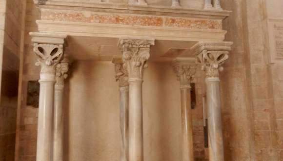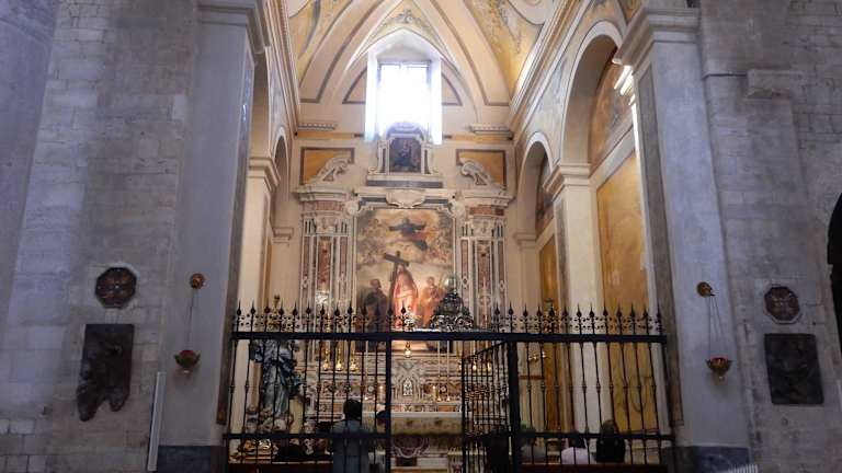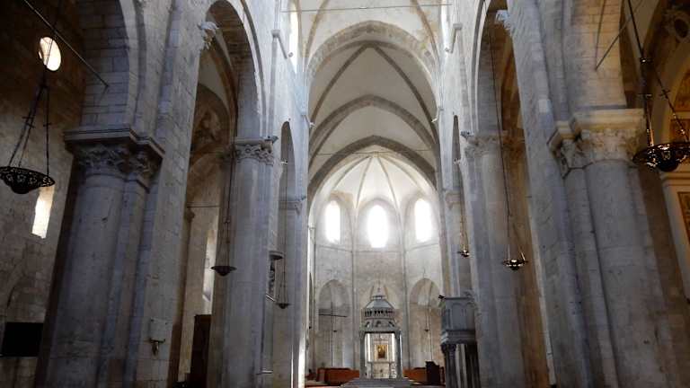 Die Kathedrale besteht aus zwei verschiedenen Teilen, der frühere romanische und der spätere gotische Teil. Diese Zeichen weisen auf eine lange Baugeschichte hin. Diese Kathedrale zeigt in der bildhauerischen Ausstattung viele kostbare Zeugnisse aus der Kreuzritterzeit auf. Zeugnisse wichtiger geschichtlicher Ereignisse sind an den Wänden der Kirche zu sehen genauso die traurigen Ereignisse der Stadt Barletta. Sie wurde Schauplatz gewaltsamer Auseinandersetzungen zwischen Franzosen und Spaniern um den Besitz des süditalienischen Königreiches.