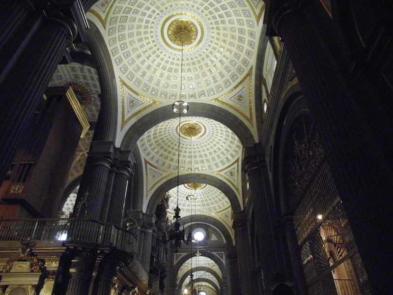Die fünfschiffige "Catedral de Nuestra Señora de la Inmaculada Concepción", die zweitgrößte Mexikos, befindet sich an der Südseite des Zócalo im historischen Zentrum von Puebla. Der Bau der Kathedrale wurde im Jahr 1575 nach den Plänen des spanischen Architekten Francisco Becerra begonnen, musste aber 1626 wegen Geldmangels vorübergehend eingestellt werden. Im Jahr 1649 konnte das Gotteshaus, obwohl es noch unfertig war, geweiht werden. Das Hauptportal wurde 1664, der Nordturm 1678, das Nordportal 1690 und der Südturm 1768 fertiggestellt. Die lange Bauzeit hatte zur Folge, dass sich in dem Bauwerk Elemente des Renaissance-, Barock- und neoklassischen Stils mischen. Kunsthistorisch bedeutsam sind der von Manuel Tolsá gestaltete zwölf Meter hohe Hauptaltar aus Onyx und die von Cristóbal de Villalpando prunkvoll verzierte Kuppel. Sehenswert sind außerdem die unterschiedlich ausgestatteten vierzehn Kapellen auf den beiden Seiten des Kirchenschiffs, das Chorgestühl aus dem frühen 18. Jahrhundert und die Krypta. Die beiden Türme der Kathedrale sind mit mehr als 70 Metern die höchsten im Land.
