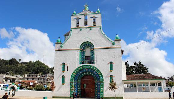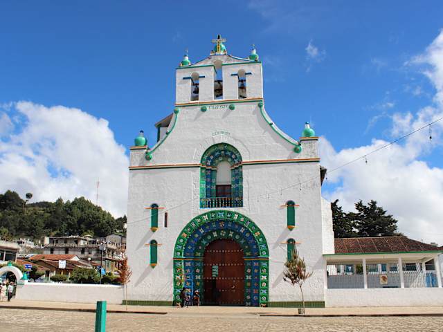 Die "Iglesia de San Juan Bautista" liegt am Hauptplatz der Tzotziles-Gemeinde San Juan Chamula, etwa zehn Kilometer nordwestlich von San Cristóbal de las Casas. Das einschiffige Gotteshaus wurde im 17. Jahrhundert im Kolonialstil errichtet. Die einfache Vorderfront wird geprägt von den naiven Blumenmustern am Eingangsportal und dem darüberliegenden Balkonfenster. Die Kirchenglocken hängen in Glockenstühlen, die sich im obersten Bereich der Eingangsfassade befinden. Außer dem Altar und den Heiligenstatuen bzw. -bildern an den Wänden fehlen die in anderen Kirchen übliche Innenausstattung (Bänke, Orgel, Kanzel, Beichtstühle) sowie eine elektrische Beleuchtung. Der Boden im Kircheninneren ist mit Kiefernnadeln bedeckt; die dazwischen steckenden brennendem Kerzen schaffen eine geheimnisvolle Atmosphäre, die durch das Verbrennen von Weihrauch und Myrrhe noch verstärkt wird. Bei den stattfindenden religiösen Zeremonien vermischen sich christliche und indigene Verhaltensweisen. Gegen Zahlung einer "Eintrittsgebühr" kann man die Kirche besichtigen. Das Filmen und Fotografieren ist im Kircheninneren jedoch strengstens verboten. Am 24. Juni eines jeden Jahres findet ein großes Patronatsfest statt.