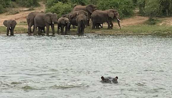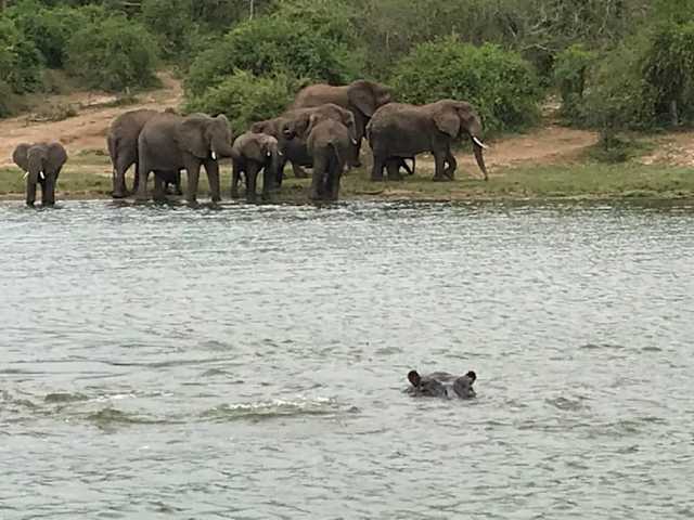 man steigt im überdachten Motorboot und fährt 2 Stunden lang auf dem Kasinga Channel. Es ist das Fest der Hippos. Nirgendwo in Afrika wohnen so viele Hippos ! man sieht sie baden, laufen, liegen, tauchen, man hört sie, man kommt ihnen nahe. Man konnte denken, die Hippos konnten jederzeit das Boot umkippen, tun sie aber nicht. sie lassen einen in Ruhe, sie fotografieren, filmen, zuhören. Es sind so unglaublich viele, Hippo Garantie!. Man konnte meinen, man kann auf sie laufen und ans Ufer zu gelangen!. es war ein toller Nachmittag