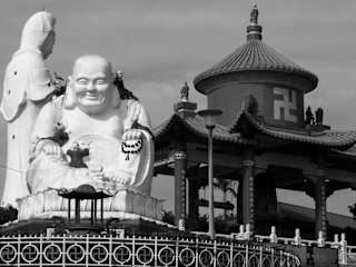 Keelung ist eine Hafenstadt im Norden von Taiwan. Die Einheimischen sprechen den Namen eher als Chi-Lung aus, was witzigerweise soviel wie "Hühnerkäfig" bedeutet. Ich habe die Stadt im Rahmen eines Ausflugs von Taipei aus besichtigt; in den meisten Hotels wird das als "Northern Coast Tour" angeboten. Es lohnt sich die ca. 20 EUR zu bezahlen statt sich um die Busfahrpläne und Ähnliches zu kümmern. . Die Stadt ist nicht sehr beeindruckend, eher schon der Hafen, den man kurz besichtigen kann. Viel interessanter fand ich den buddhistischen Tempel oben auf dem Berg über Keelung. Von dort sieht man auch gut den Hafen. Vor dem Tempel gibt es eine eindrucksvolle Buddha-Statue, die rund 26 m hoch sein soll. Daneben zwei putzige Wachhunde, die wohl gefährlich dreinblicken sollen. Dazu etliche Nebengebäude und eine riesige Glocke. Im Tempelgebäude selbst befindet sich eine weitere Buddha-Statue, diesmal liegend, sowie einiges an eindrucksvoller Ausstattung. Der eindrucksvolle Tempeleingang wird von zwei weißen Elefanten bewacht. Für die Besichtigung genügen etwa 40-60 min; Eintritt wird nicht verlangt. Was etwas stört, ist die Tatsache, daß die Taiwanesen ohne Rücksicht auf die Tempelwürde vor dem Tempelgebäude eine bescheuerte Rennbahn mit Elektroautos für Kinder aufgebaut hatten, inkl. nerviger Musik.