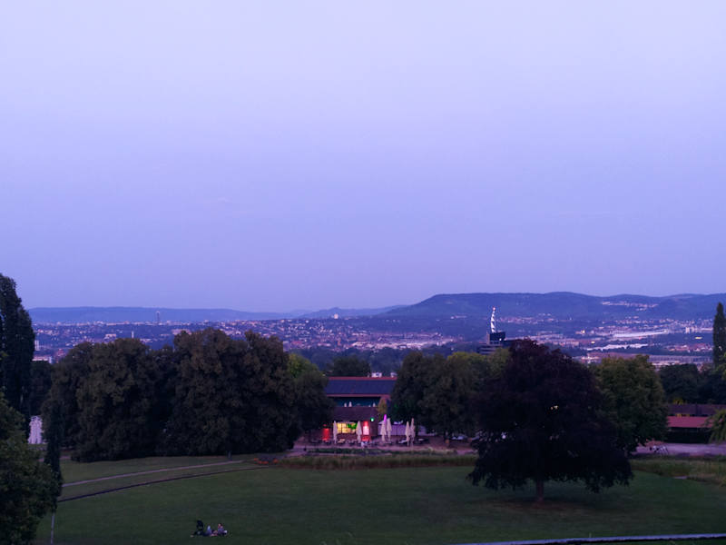 Auch am Abend einen Abstecher wert - von hier kann man in der Abenddämmerung im Hochsommer schön die Lichter von Stuttgart und weit darüber hinaus sehen.