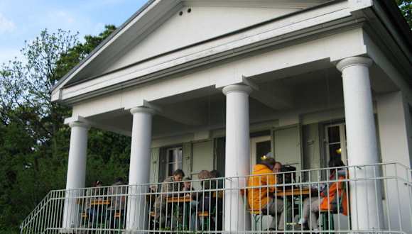 Eines der Wahrzeichen der Stadt Bensheim ist das "Kirchberg-Häuschen" (seit 1847) oberhalb der Stadt. Von der Stadtmitte läuft man durch den Stadtpark und dann 10 Minuten den steilen Weinberg hinauf. Oben angekommen genießt man die herrliche Aussicht über die Bergstraße und die Rhein-Ebene und kann sich bei einem Schoppen Wein und einer Brotzeit stärken. Gutes Preis-Leistungsverhältnis! Besonders empfehlenswert bei gutem Wetter, wenn man im Freien unter den Schatten spenden Bäumen sitzen kann. Montags Ruhetag. Am Wochenende sehr voll.