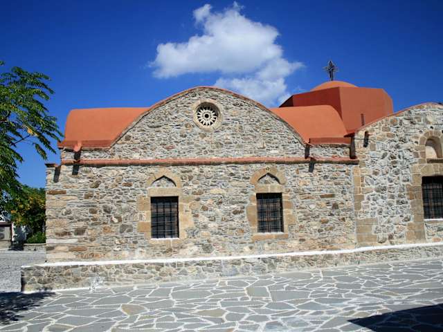 Anfahrt: Mit dem Auto: Fahren Sie von Rhodos-Stadt aus auf der Hauptverkehrsstraße in den Süden über Archangelos. Nach Kalathos rechts halten und nicht den Umweg über Lindos fahren. Bei Kiotari zweigt rechts eine Straße nach Asklipion ab Im vom Tourismus fast unentdeckten Bergdorf im Landesinneren steht eine der ältesten Marienkirchen auf Rhodos. Mit dem Bau der Kimisis tis Theotokou "Mariä Entschlafung" wurde angeblich schon im elften Jahrhundert begonnen, wenn man einer Inschrift am Eingang Glauben schenken kann. Die kreuzförmig angelegte Kirche ist im Inneren verziert mit Fresken aus dem 17. Jh., unter denen sich sogar seltene Darstellungen der Apokalypse befinden. Neben der Kirche befindet sich ein kleines Folkloremuseum, das u. a. religiöse Gegenstände. Öffnungszeiten: Täglich von 9 - 18 Uhr
