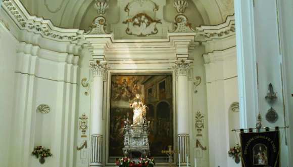 Die ursprüngliche Klosterkirche der Zisterzienserinnen aus dem 15. Jahrhundert wurde 1693 durch ein Erdbeben vollständig zerstört und die heute zu besichtigende Kirche im Barockstil ist der zwischen 1695 und 1705 errichtete Neubau. An der Fassade fällt ein filigraner, schmiedeeiserner Balkon über dem barocken Eingangsportal auf, im eleganten Inneren ist Caravaggios Meisterwerk "Das Begräbnis der heiligen Lucia" von 1608 das herausragende Merkmal.
