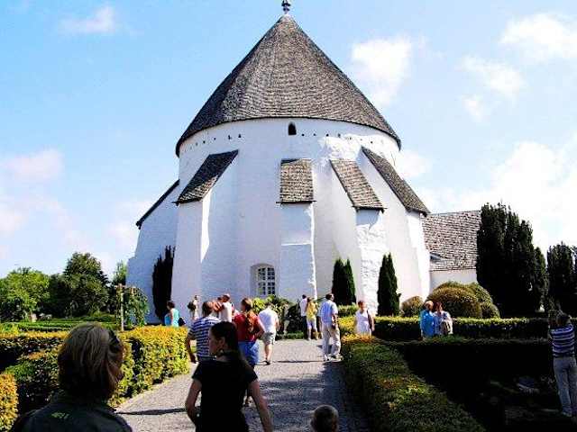 Die "Østerlars Kirke", die größte der vier Bornholmer Rundkirchen, steht im Nordosten der dänischen Ostseeinsel Bornholm nordöstlich des Zentrums von Østerlars an der Straße in Richtung Gudhjem auf einem Hügel. Diese ähnlich einer Festung im romanischem Baustil erbaute Kirche ist gleichzeitig eines der ältesten Sakralgebäude der Insel. Ihren Namen, der sich aus den Worten Øster für Ost und Lars für Laurentius zusammensetzt, hat sie seit dem 16. Jahrhundert. Das dreistöckige Gotteshaus wurde vermutlich bereits um 1150 errichtet und erstmals im Jahre 1332 schriftlich erwähnt. Es hat einen Außendurchmesser von 16,00 und einen Innendurchmesser von 13,20 Metern und besitzt -wie die anderen Rundkirchen- einen mächtigen Mittelpfeiler, der das Gewölbe trägt. Der große Raum im Erdgeschoss wurde für Gottesdienste genutzt; die erste Etage diente bei Konflikten als Schutzraum für Alte, Frauen und Kinder und die zweite Etage der Verteidigung. Sehenswert sind die Fresken auf dem Mittelpfeiler, die das Leben Christi von der Verkündigung Marias bis zum Jüngsten Gericht zeigen sowie die Renaissance-Kanzel aus dem Jahr 1595. Der viereckige Glockenturm steht etwa 20 Meter westlich der Kirche. Im Jahr 1955 wurde das Gebäude restauriert. Homepage: https://www.oesterlarskirke.dk/