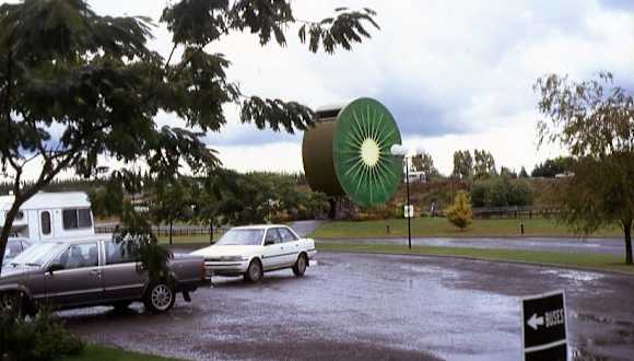 Auf dem Weg von WHAKATANE nach AUCKLAND passiert man mit dem Auto den Ort TE PUKE. In der Nähe liegt KIWI FRUIT COUNTRY (das Land der KIWI-Frucht). Das große Gebiet ist die Kombination einer Obstplantage, eines Museums und eines Freizeitparkes. Mit dem KIWI-Cart kann die Plantage besichtigt werden. Die KIWI-Frucht kam ursprünglich aus China und zählte dort zu den Stachelbeer-Früchten. Sie gedeihten besonders gut in NEUSEELAND und kamen so zu ihrem Namen KIWI-Frucht. Obwohl diese Frucht auch in CHILE und den USA angebaut wird, ist NEUSEELAND immer noch der größte Exporteur.