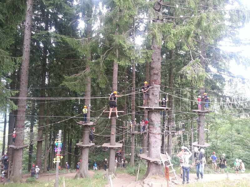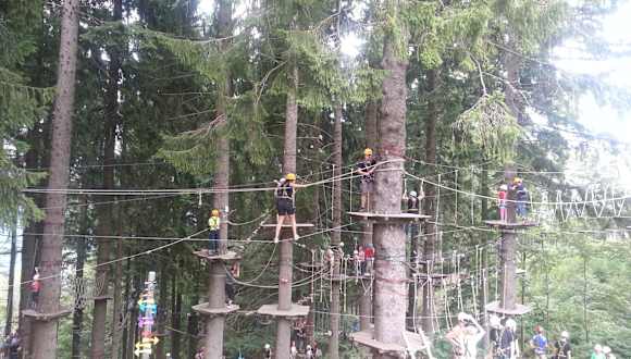 Der Kletterpark ist einfach riesig und hat verschieden schwere Kletterparcours. Vor allem der Flying Fox Parcours macht richtig Laune. Da gehen Seilbahnen von Baum zu Baum. Toll ist auch die Berghütte direkt nebenan. An der Rodelbahn sind leider viele Menschen angestanden. Wir haben uns dann entschieden wieder zum Parkplatz zu wandern und nicht wie eigentlich vorgesehen zu rodeln. Die Wanderung war dann aber sehr schön. Alles in allem ein sehr außergewöhnlicher und toll gelegener Kletterpark. Wir kommen auf jeden Fall wieder um auch noch die Parcours zu klettern, die wir nicht geschafft haben.