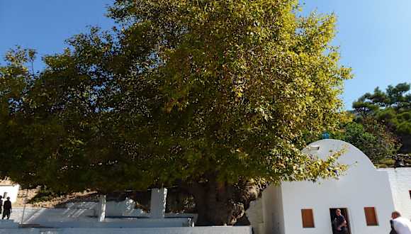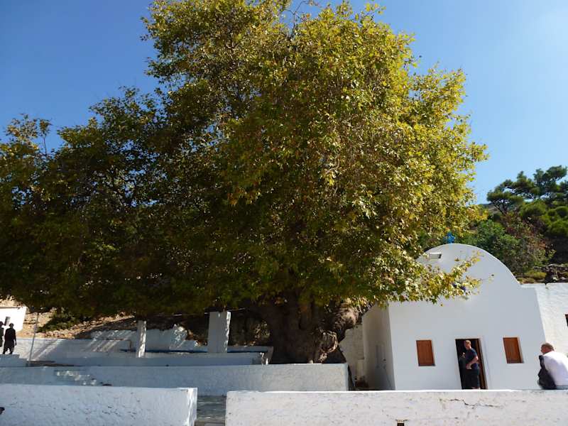 Das Kloster wird auch Ágios Ioánnis Thymianós. Das ehemalige kleine Kloster steht heute einsam und verlassen über der Westküste von Kos. Vom Ende des Zufahrtswegs führen 43 Stufen hinunter auf die Klosterterrasse, auf der eine uralte, stützungsbedürftige Platane die kleine Klosterkirche überschattet. In ihr hängen und stehen vor allem neue Ikonen. Auf der Terrasse stehen Zementtische und -bänke. Hier kann man jederzeit herrlich picknicken. Ein kleiner Imbiss ist ebenfalls dort. Es sind dort Ruinen der Klosteranlage zu besichtigen und man hat einen herrlichen Ausblick aufs Meer.
