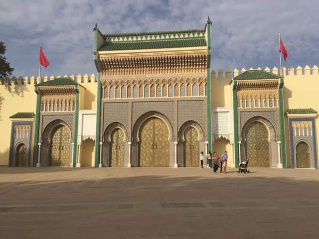 Der Königspalast ist leider nur von außen zu betrachten, Fotos kann man nur von der Seiten mit den Toren machen, links stehen Wächter und diese dürfen nicht fotografiert werden. Aber schon von weitem leuchten die sieben Tore (7 Tage der Woche), diese Prunktore zieren wunderschöne Rosen, viele Mosaike... Wenn man Fes besucht bitte anschauen.