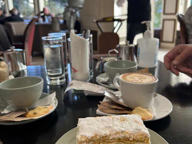 Im noblen Stadtteil Kifisia, mit dem Metro erreichbar. Eine Zeitreise in den 60er Jahren. Bitte nicht renovieren! So viel Auswahl an Süss und Salzig, die Augen essen mit, am besten alles bestellen und probieren. Frisch zubereitet, die Konditorei ist direkt integriert. Renovierter Raum zum Sitzen und Geniessen, das Original ist vorne, die Verkaufsräume zum Mitnehmen. Hier kann man noch Filme drehen und mit seinen Grosseltern Torte essen kommen.