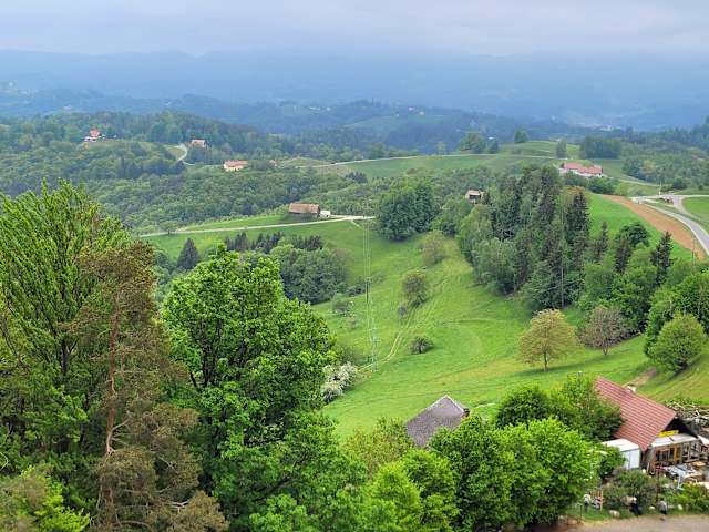Ich war schon einmal hier, bin aber nicht hinaufgegangen - aber diesmal schon und es war super !!! Die Kreuzbergwarte hat eine Höhe von 30 Meter und die Aussichtsplattform befindet sich in 25 Meter Höhe, Bauweise Metall und Holz. Um ganz nach oben zu kommen mußte ich 117 Stufen besteigen, die Anzahl der Podeste sind 16 Stück, aber wenn man diese Mühe in Kauf genommen hat - ist der Blick einfach atemberaubend (natürlich bei guter Sicht). Westlich blicke ich Richtung Kärnten, auf die Koralpe und den Speikkogel, zum Demmerkogel und ins Sausal.