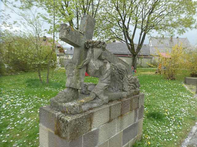 Die Sandsteinfigur des unter der Last des Kreuzes gestürzten Jesus findet man in dem Wernecker Ortsteil Egenhausen (auf der Grünfläche schräg vor dem Fränkischen Bildstockzentrum). Es ist eine durchaus beeindruckende Darstellung des mit dem Kreuz beladenen und gestürzten Jesus.