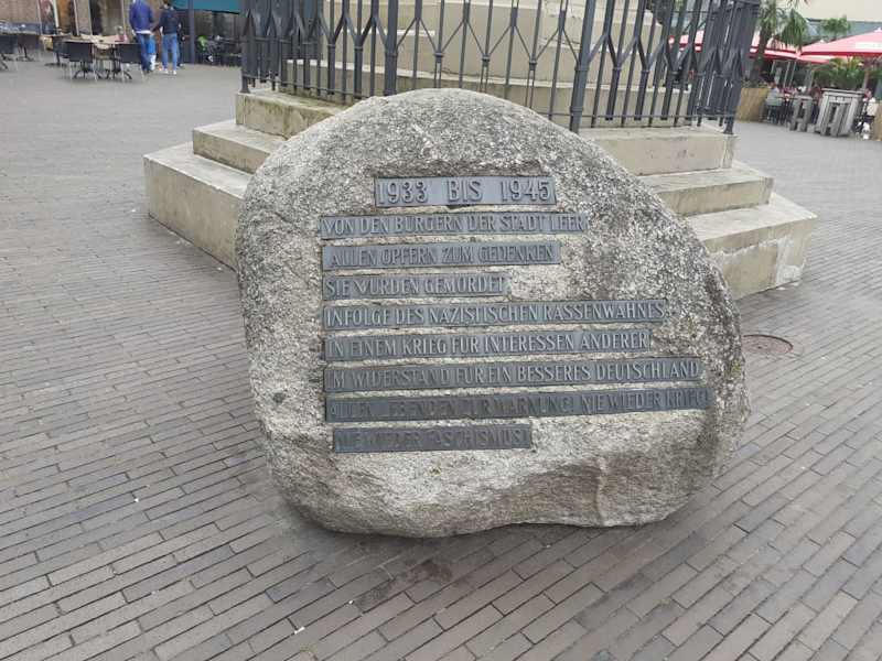 Wir waren in Leer zur Besichtigung der sehr schönen Altstadt unterwegs, das sehr schöne Kriegerdenkmal zur Erinnerung an die Gefallenen des Krieges 1870 / 71 mit dem Gedenkstein am Denkmal zur Ehrung der Opfer des Wiederstands und Mahnung an die NS Zeit, nie wieder Krieg und nie wieder Faschismus in der Fußgängerzone von Leer gelegen ist für uns eine sehr gute Sehenswürdigkeit und eine klare Weiterempfehlung wert!
