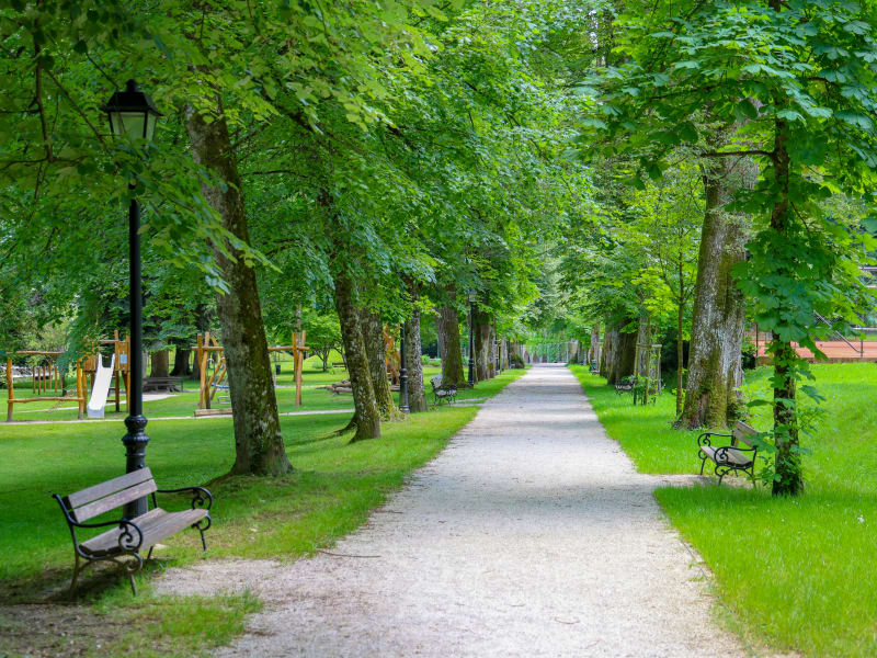 Die Therme Dobrna ist die älteste Therme in Slowenien, die Errichtung des Kurparks ging auf ca. das Jahr 1820 zurück. Dobrna war einer der ersten Kurorte der einen eigenen Kurpark hatte. Der damalige Besitzer ließ eine Kastanienallee anpflanzen, er verband damit das Kurhaus mit dem Ort Dobrna. In den nächsten Jahrzehnten wurden viele Anpflanzungen vorgenommen - von Baumgruppen, Gebüsche uvm. es wurden im Laufe der Zeit Wege und Rastplätze errichtet. Heute gibt es sehr viele Bänke um auszuruhen, einen Pavillon, Wetterstation, eine Trinkhalle, Tennisplatz, Tischtennistisch uvm. Ich fand diesen Kurpark super - spazierengehen, Ruhe tanken, einfach nur genießen !!