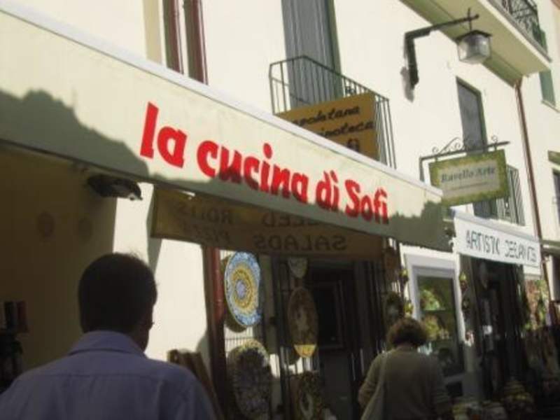 Nun ja, wer nach Ravello fährt, sollte nicht auf's Geld schauen müssen. Doch 21 EUR für zwei kleine zermatschte Portionen in der Mikrowelle nicht richtig aufgeheizte Lasange auf Plastiktellern mit zwei Gabeln und einem (!) Messer für zwei Personen sowie ein Glas Wein, vielleicht 0.15l im Plastikbecher zu verlangen ist ein echt starkes Stück. Auch wenn Sie nur einen kleinen Hunger stillen wollen und keine Lust auf mehrere Gänge haben, gehen Sie lieber in einen McDonalds oder einen Supermarkt und setzen Sie sich auf eine Bank. Auch wenn "Sofi" für ehrliche handgemachte Waren wirbt, ehrlich nenne ich das nicht! Ich hatte sogar das Gefühl, die Preise werden nach Ansehen gemacht.