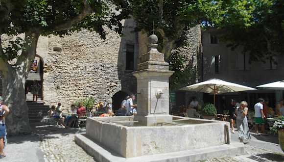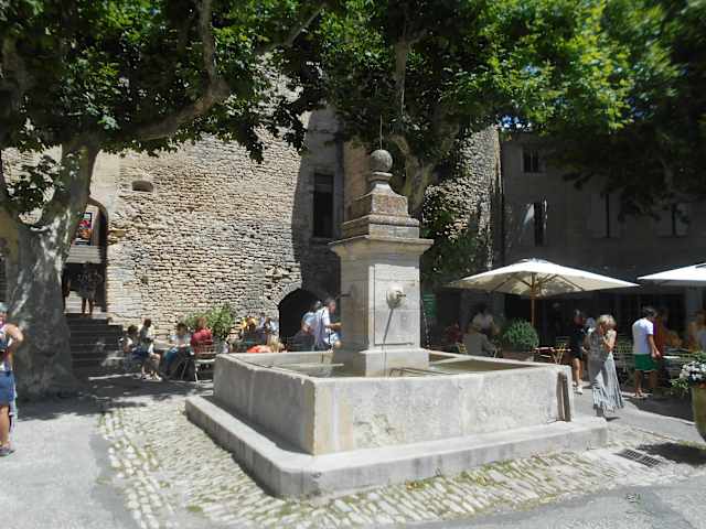 Auf den kleinen Platz vor dem Haupteingang zum Château de Gordes, dem Genty Pantaly, der auch als Marktplatz dient, steht ein dieser einfache Steinbrunnen mit einem quadratischen Becken. Der historische Brunnen war bis 1956, als fließendes Wasser in den Häusern installiert wurde, die zentrale Wasserstelle des Dorfes. Das Brunnenwasser war den täglichen Verbrauch reserviert, und es war verboten, hier am Brunnen seine Kleidung zu waschen -dafür durfte nur Flusswasser am Fuße des Berges genutzt werden.