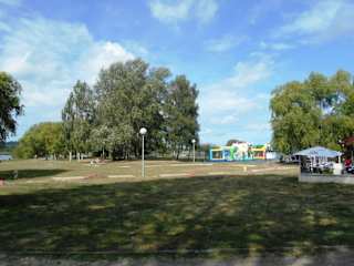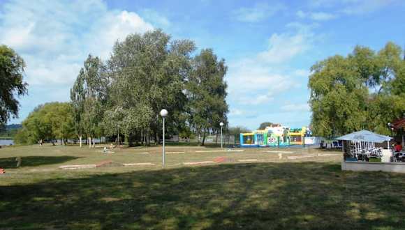 Rund um den See, der 56 Hektar groß ist, gibt es einen großen Park mit einem Campingplatz, einer Snackbar, einem Wald, einem 4 km langen Spaziergang rund um den See und einem schönen Sandstrand, an dem die Kinder auch Sandburgen bauen können. Wer kein Camping mag, kann auch recht originelle, schwimmende Bungalows auf dem See als Unterkunft wählen.