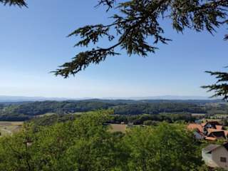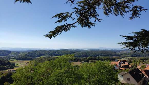 Dieser 11,5 km lange Rundweg ( Auf den Spuren der Vulkane ) beginnt am Kirchplatz oben in Straden und führt über eine Hügelkette Richtung Süden. Er ist gut beschildert, aber man soll unbedingt in Pfeilrichtung der gelben Hinweistafeln gehen ! Bei Bergfex ist er leider entgegengesetzt eingetragen. Zunächst wandert man steil hinunter nach Marktl, einen Güterweg hoch und lange durch ein Waldstück ( die Waldwege sind durch das Laub schwer zu erkennen ) bis man zur Umkehrschlinge des Weges ( ca. die Hälfte ) kommt. Vom Langwald geht es dann über befestigte , aber wenig befahrene Güterwege einen Höhenrücken entlang, immer begleitet von schönen Aussichten, bis zum Musseum des Bulldogwirtes ins Tal hinunter. Von hier geht es nun sehr steil hinauf zu den Kirchen von Straden zur Aussichtsplattform, von wo man einen weiten Blick ins Tal hinein hat. Der Höhenunterschied beträgt etwa 370 Meter und ich würde den Rundweg als leicht bis mittelschwer bezeichnen. Wegbeschaffenheit: 60 % asphaltierte Wege, 40 % einsame Wald und Wiesenwege. Gehzeit ca. 3 St. 15 min.