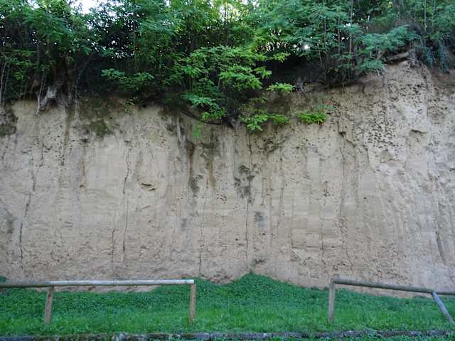 Während der letzten Eiszeit wurde durch Nordwestwinde mehliger Staub aus dem Rheintal hierher geweht. Der Staub ist durch Kalk verfestigt worden und hat viele kleine Poren, durch die das Regenwasser sickern kann. Für Interessierte sicher spannend.