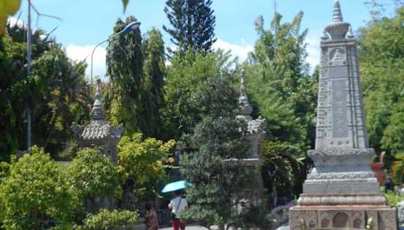 Der Bau der ursprünglichen Long Son Pagode im Jahr 1886 geht auf Thích Ngộ Chí zurück, der vor seinem Leben als Mönch in diesem Kloster Teil der antifranzösischen Kräfte war, die für ein freies Vietnam eintraten. Die heutige – zu Beginn des 20. Jahrhunderts an ihren jetzigen Standort verlegte – Pagode liegt in einem sehr schönen Gartengelände am Fuße eines Berges. Von den mehrfachen Zerstörungen, zuletzt durch den Vietnamkrieg, ist nichts mehr zu erkennen. Trotz der zahlreichen Besucher herrscht eine friedliche, fast stille Atmosphäre rund um die Pagode, weil es die Touristenströme auf den Berg zieht, von wo sie die Aussicht über die Stadt haben. Ich habe mir die 150 Stufen bis zum Gipfel erspart und fand den Aufenthalt im unteren Bereich der Anlage sehr entspannend.