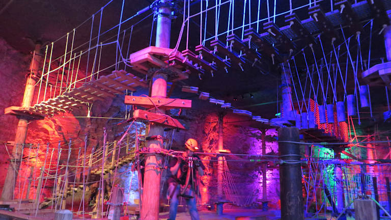 2-stündiges Seilrutschvergnügen in einem ehemaligen Bergwerk, Es gibt 6 verschiedene Zip-Lines, die alle komplett unterirdisch sind. Teilweise ist es so dunkel, dass man nicht sehen kann, wo man entlang saust, was eine fantastische und einmalige Atmosphäre birgt. Auf dem Kurs gibt es noch 2 Challenge Bridges à la Indiana Jones. Die Tourguides sind immer dabei und übernehmen die komplette Sicherung. Dabei erfährt man auch noch historisches über das Bergwerk. Ein absolutes Highlight in Kentucky.
