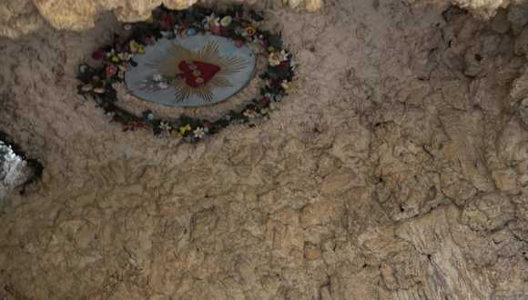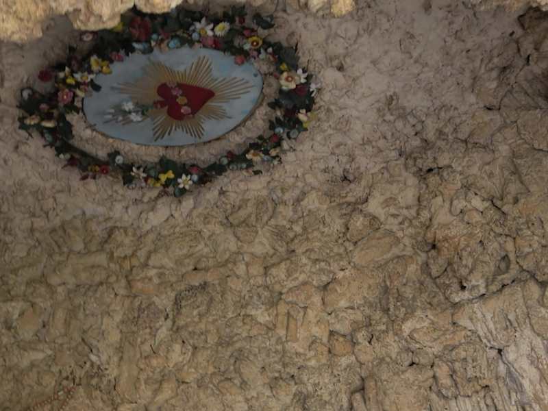 Direkt im Mauerwerk der Kirche St. Martin, in Altheim, ist eine schöne Lourdesgrotte hineingebaut. Sie befindet sich an der südlichen Seite der Kirche. Am Eingang ist ein Gittertor. In der Grotte ist eine Marienfigur, mit dem Blick in den Himmel gerichtet. Darunter ist ein Betschemel aus Kunsteisen gefertigt. Darauf Kerzen und Blumengestecke. In der rechten Wand ist ein Herz mit Blumenrand angebracht. Adresse: Kirchstraße 1, 88499 Altheim Webseite: https:// www. kloster-heiligkreuztal. de/meta/start. html Geodaten: 4CWX+47 Altheim