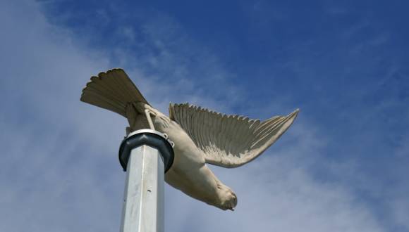 Ein satirisches Kunstwerk von Peter Lenk im Hafen!