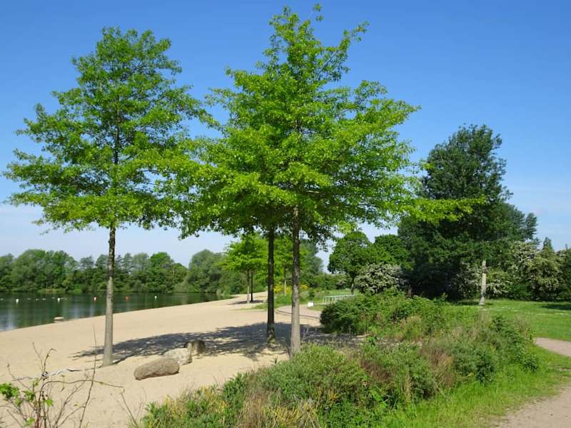 Wie viele Badeseen in Bremen ist auch der „Mahndorfer See“ durch Sandentnahme für den Straßenbau vor über 50 Jahren entstanden und liegt im Süd-Osten der Hansestadt in der Nähe der Autobahn A1. Mit 22 Hektar Fläche und einer Tiefe von knapp 15 Metern ist der See ein beliebtes Naherholungsgebiet, denn die Wassergüte ist exzellent und die Uferzonen neben den beiden Badestellen präsentieren sich völlig naturbelassen. Ein Weg führt von der Zufahrt mit großer und kostenloser Parkfläche direkt zum Hauptstrand, an dem sich eine ehrenamtliche Wasserwacht um die Sicherheit der Badenden kümmert. Auf den großen Liegewiesen, die hinreichend Schattenplätze bieten, darf gegrillt werden, ein Beach-Volleyballfeld ist ebenso vorhanden wie Duschen und WCs, ein abgetrennter Nichtschwimmer-Bereich und daneben noch zwei Vogelschutzinseln mitten im See, die natürlich nicht betreten werden dürfen. Allein die nahe Autobahn mit ihren Verkehrsgeräuschen lässt ahnen, dass man sich doch in urbaner Umgebung befindet. Der „Mahndorfer See“ ist besonders unter der Woche eine feine Adresse zum Baden und Relaxen, während es an Hochsommer-Wochenenden auch schon mal etwas eng werden kann.