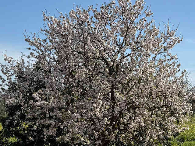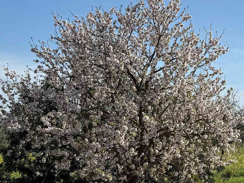 Mallorca ist auch für die Mandelblüte bekannt, die jährlich zwischen ca. Mitte / Ende Januar bis ca. Mitte / Ende März erfolgt (je nach Wetter und Mandelsorte) und viele Besucher_innen auf die Insel zieht. Wenn man den ersten blühenden Mandelbaum sieht, so findet man das schon gut, aber wenn man eine ganze Gruppe blühender Mandelbäume oder gar eine Mandelbaum-Plantage vor den Augen hat, so blickt man auf ein wahres Blütenmeer.